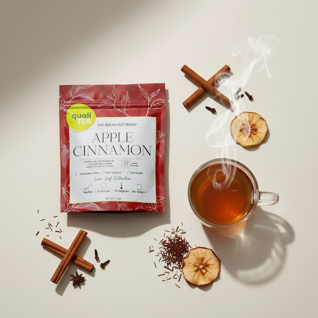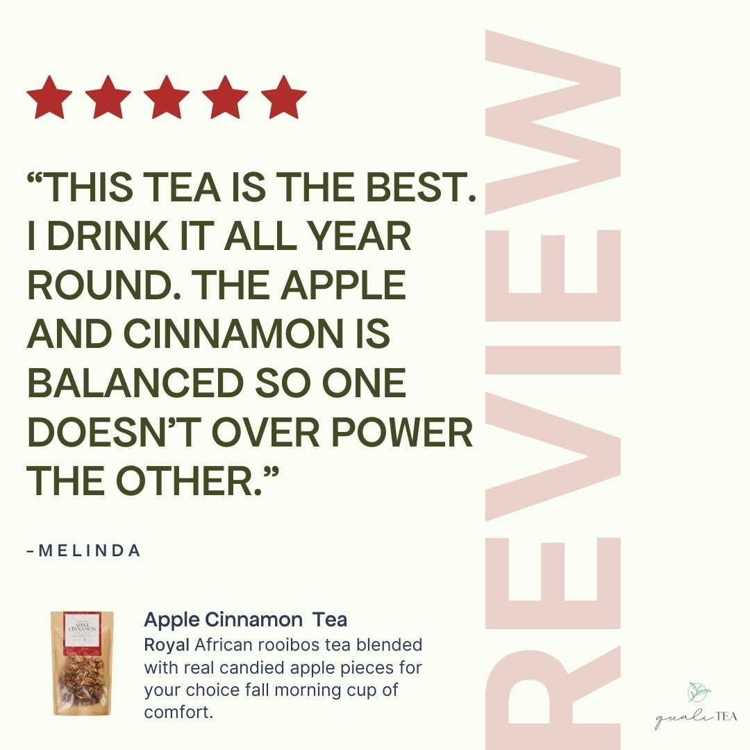 Organic Rooibos, Cinnamon Chips, Candied Apple Pieces, Cloves, Marigold Flowers